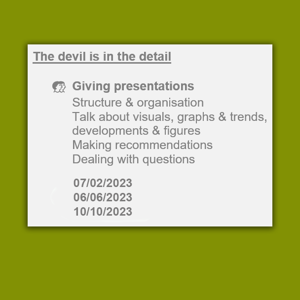 How about taking one day to talk about such matters and to learn new ways that may even save you some time in future. We offer monthly one-day workshops on four typical business situations and tasks in a relaxed atmosphere in our offices in Grevenbroich or online.